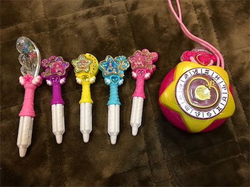 2019-02-11 4歳 ricca 数日経ってしまったけど、先日我が娘は4歳の誕生日を迎えることが出来ました。 今年の誕生日プレゼントは、始まったばかりの『トゥインクルプリキュア』の玩具。本物?公式?のものだからいい値段したけど、やっぱり本物はクオリティが違うねー。 これが物凄く嬉しかったらしく、翌日も早く目を覚まして「プリキュアの玩具で遊ぶ!」と言い出す始末( ̄▽ ̄;) もうこの年齢になると衝撃的なことは将来まで記憶に残るから、4歳の誕生日にプリキュアのおもちゃを買ってもらって嬉しかった、という記憶が残ってくれると嬉しいなぁ。 それにしてもトゥインクルプリキュア始まったばかりなのに、もう既に一通りの玩具というかグッズが揃っていたのには驚いた。