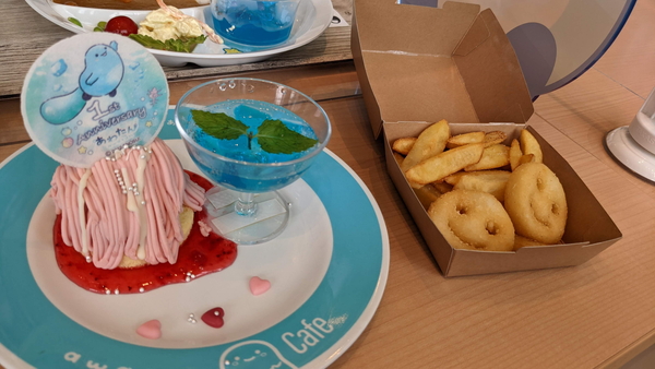 そしてランチはあわたんカフェで。娘ちゃんはいちごモンブランとフライドポテト。