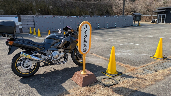 1台だけポツンと寂しく停まる我がZZR。そりゃみんな鳥居原園地のほうに行くだろうし、わざわざ100円払ってこんなところに来ないよね・・・