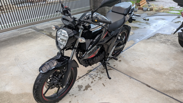バッテリー充電して、オイルとオイルフィルター交換して、前後ブレーキフルードを交換して、タイヤの空気圧を補充してとりあえず乗り出し整備完了。チェーンが酷い有様だったのでこれも近いうち交換したい。ブレーキパッドはまだまだ大丈夫そう。